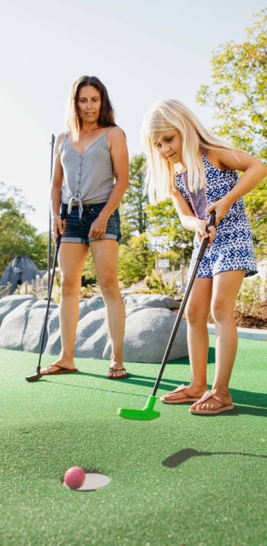 Eine Minigolfanlage mit Blick auf die umliegenden Berge – Spaß für die ganze Familie.